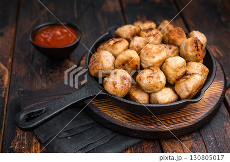 Delicious meatballs, meat patties, showcasing a golden crust and tender interior. isolated on wooden background. top view