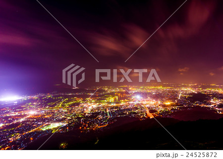 “山梨縣”甲府市中心的夜景和千代田湖白山的景色