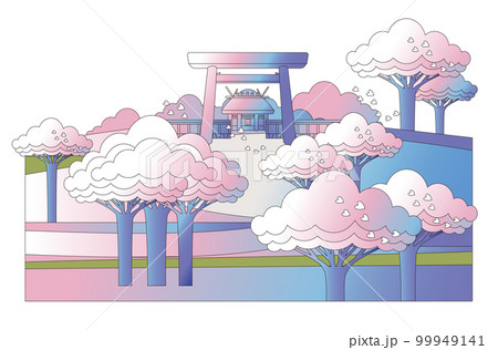 春天的伊勢神宮、櫻花和鳥居的風景、被櫻花和新綠包圍的內宮、伊勢志摩旅遊勝地