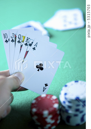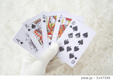 皇家同花順手牌。撲克牌,祝你好運圖片