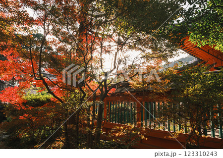 [毘沙門堂門跡] 色彩繽紛的秋葉和歷史悠久的寺廟