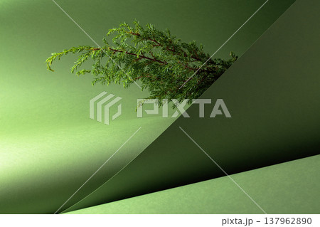 Juniper branches on a green background.