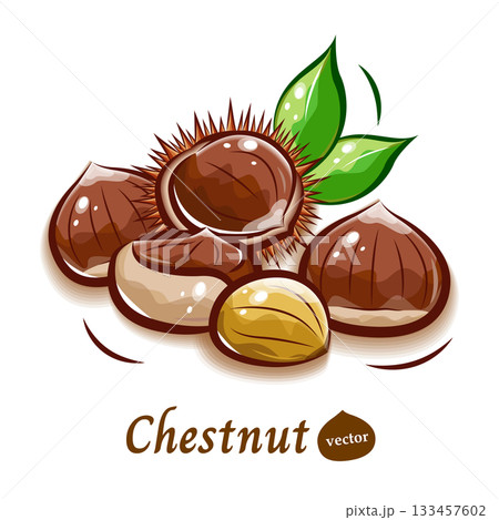 栗子普普藝術插畫(去皮栗子和栗子殼)| 蔬菜向量素材系列