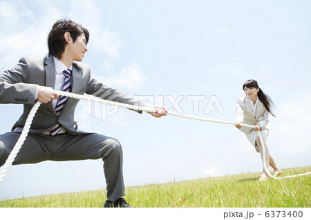 A businesswoman forced back by a hook. Business with holding you back flat vector style