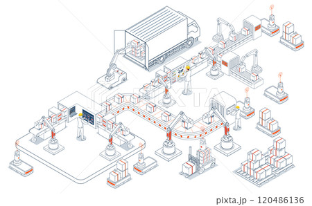 Automated Warehouse Robots and Smart Warehouse Technology concept with Agv robots, Warehouse Automation System and Automated inventory control platforms. Vector illustration EPS 10