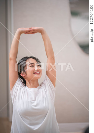 從事戶外瑜伽,公園瑜伽,森林沐浴,瑜伽課的婦女