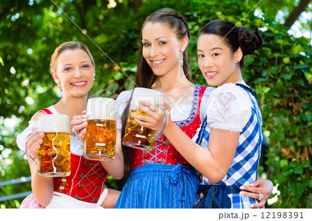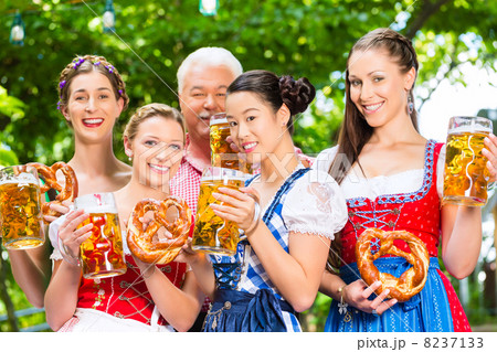 Beer garden - friends drinking in Bavaria Pub