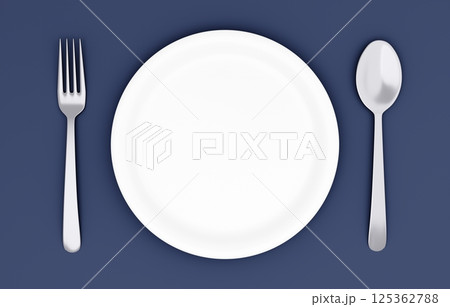3D插圖_盤子和餐具_海軍藍