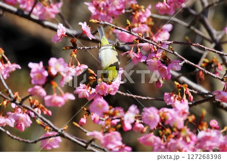 河津櫻花與繡眼鳥(河津櫻花:開花時間為 2 月初至 3 月初)