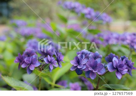 雨季的繡球花在天空的襯托下綻放出鮮豔的色彩