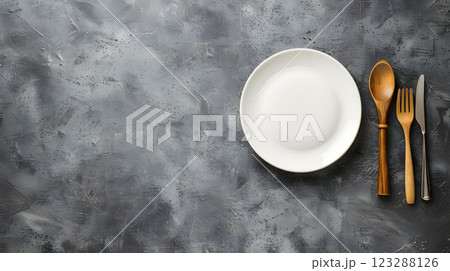 Empty plate with utensils as a conceptual background for lunch, breakfast, meal