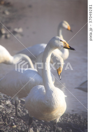 北海道的Kussharo湖,煙霧中的天鵝,3月份的Kussharo湖