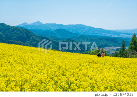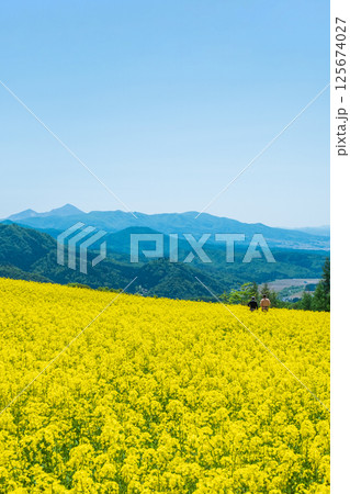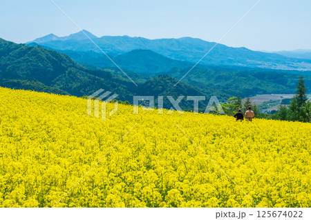 三之倉高原油菜花田:眺望磐梯山