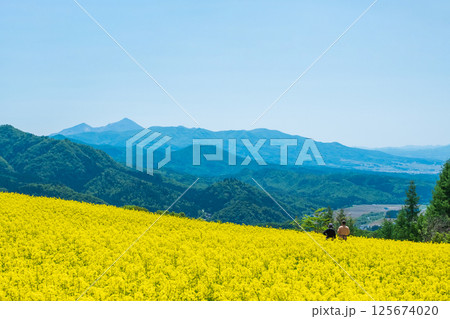 三之倉高原油菜花田:眺望磐梯山