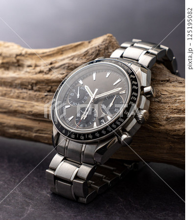 Realistic watch clock chronograph stainless steel black dashboard design luxury fashion object for men on white background vector