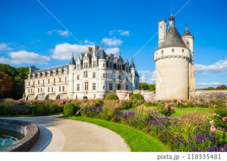 Chateau de Chenonceau is a french castle spanning the River Cher near Chenonceaux village, Loire valley in France