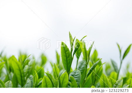岡山縣:春天的岡山後樂園,茶園裡的茶葉綻放著美麗的芽