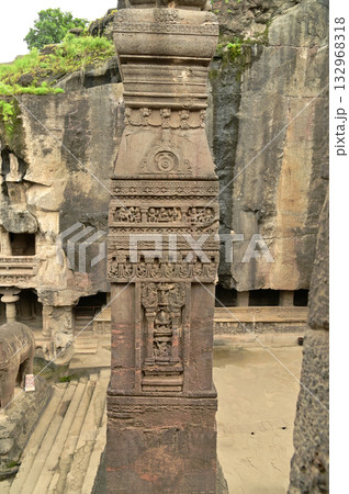 Architecture of the Hindu religious art at the Elora Caves, a UNESCO World Heritage Site, is one of the world's largest collections of rock-cut temples, dating back to 600-1000 AD.