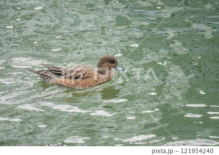 Wigeon(女)在大阪市土佐堀川中之島公園河裡游泳