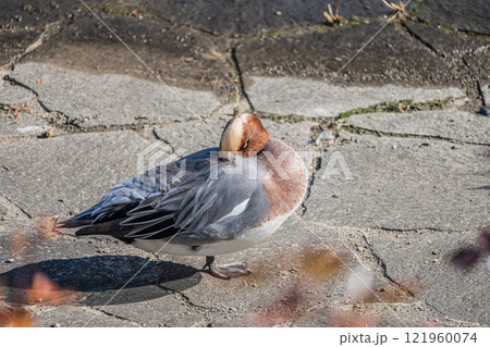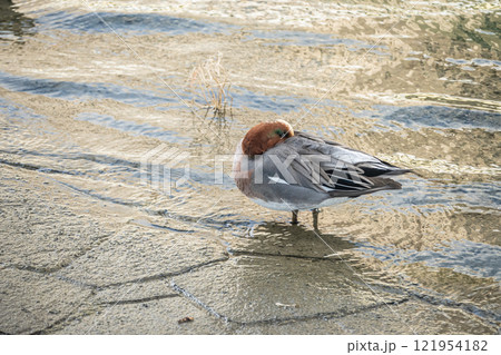 Wigeon(男)在大阪市土佐堀川水邊打瞌睡