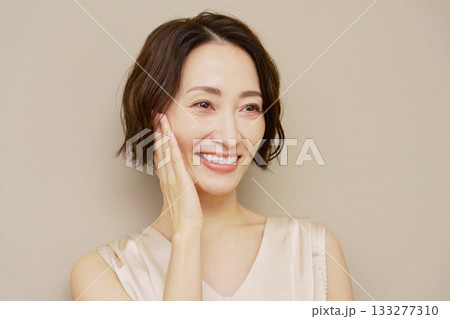 40 多歲女性肖像,無凝視,白色背景