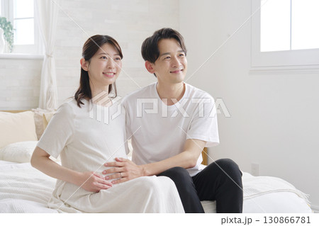 一對夫妻的肖像:丈夫撫摸懷孕妻子的肚子