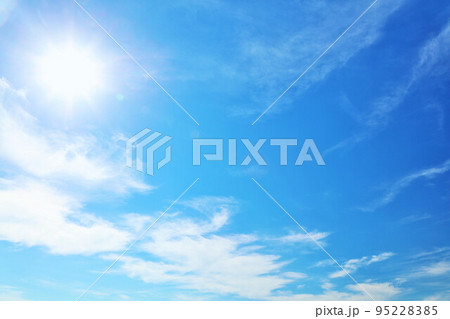 藍天和藍天中的太陽白色積雨雲紫外線UV中暑背景材料