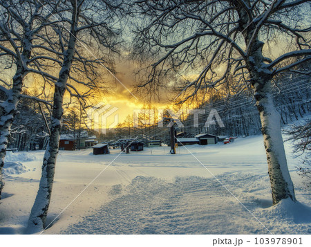 【HDR】日出時的滑雪場風光