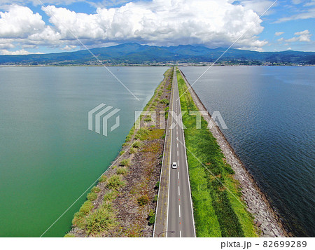 橫穿諫早灣的潮堤直路鳥瞰圖