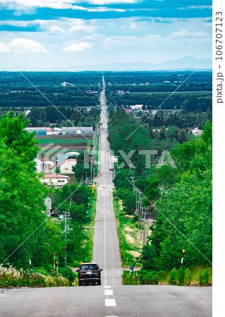 [富良野市東富岡,通往蘆別山的筆直道路]