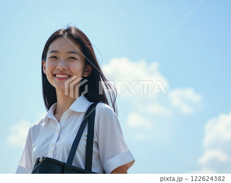 可愛的微笑高中女孩