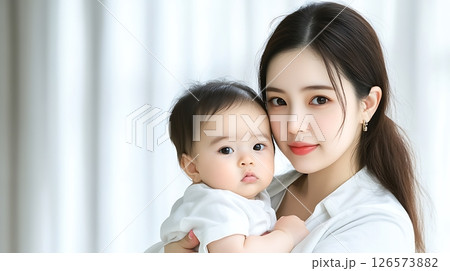 happy asian mother with her baby boy