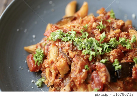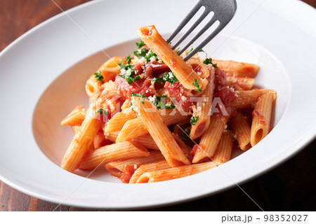 Arrabbiata,番茄醬義大利麵,辣辣椒,明亮的背景,白盤