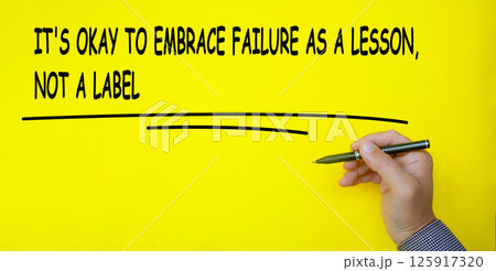 It is okay to embrace failure as a lesson, not a label text written on yellow cover background. Inspirational and motivational concept.