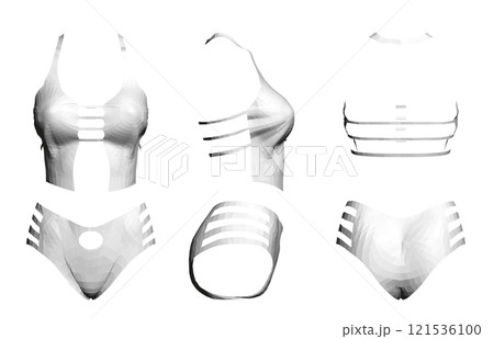 Set with polygonal model of gray sexy women's underwear isolated on white background. Front, side, back view. 3D. Vector illustration.