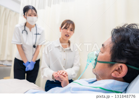 手繪線描彩色插圖年長夫婦男性住院微笑