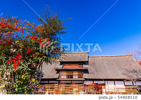 (山梨縣)舊高野家宅邸(觀總屋敷)從客廳望去屋簷上的柿子