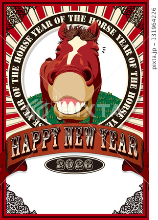 2026年新年賀卡範本「藝術海報風格設計」新年快樂,有手寫空間