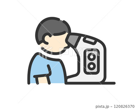 用機器進行視力測試的男性圖示(線條顏色)的插圖