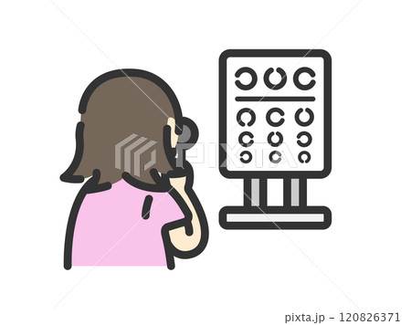 進行視力測試的女性圖示(線條顏色)的插圖