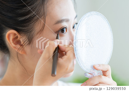 使用眼線筆的年輕女子