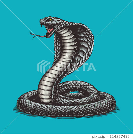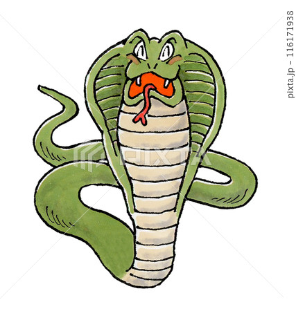 Image of painting very fierce king cobra ancient chinese style on a white background., Reptile., Wildlife Animals.