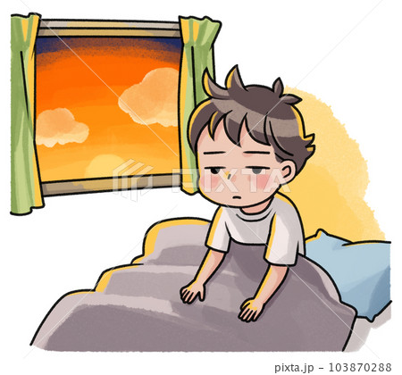 一個早上起床困難的年輕人的插圖素材