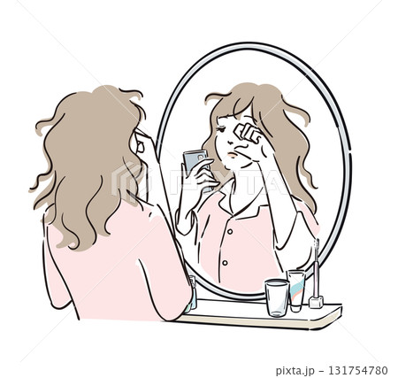 穿著睡衣的女人在鏡子前打哈欠