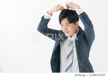一個關心自己髮型的年輕上班族