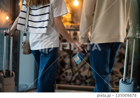 Mature couple sitting by fireplace in chateau living room, happy spouses celebrate valentine's day on nature trip