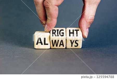 Always alright symbol. Concept words Always alright on wooden block. Beautiful grey table grey background. Businessman hand. Business always alright concept. Copy space.