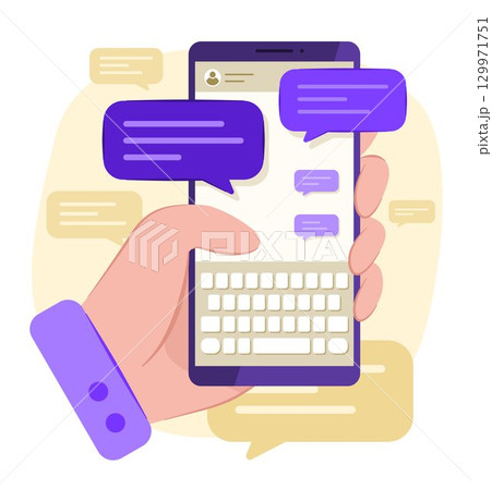 Human Hand Holding a Smartphone with Chatting Application and Message Bubble Icon Symbol for Online Chatting and Telecommunication Concept Illustration Clip Art