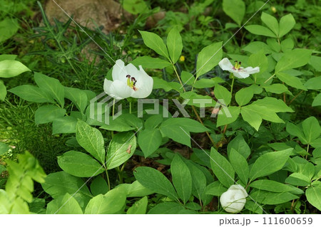 山牡丹白花盛開在森林裡