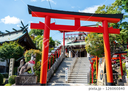 愛知縣犬山市三光稻荷神社的正門、參道和石階。